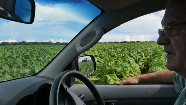 Eigentlich wollten wir gleich wieder weiterfahren, aber daraus wurde nichts. Es war gerade Tabakernte und wir wurden von Patrick, er ist der Farmbesitzer, gleich eingeladen doch einige Tage zu bleiben um das Einbringen und die Weiterverarbeitung der Tabakblätter filmisch aufzunehmen. Dieser Einladung konnte ich nicht wiederstehen….