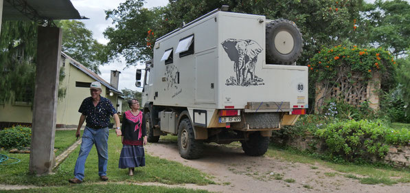 Am Wasserfall war ich total beschäftigt mit meinen Filmaufnahmen und bekam nur am Rande mit, dass neben mir einige Personen standen die sich deutsch unterhalten haben. Zurück am Parkplatz sprach mich der Mann an wegen unserem Kennzeichen LB-, denn er kommt auch aus dieser Gegend. Gleich waren wir auf gleicher „Höhe“ und Klaus lud uns ein, bei ihm in der Nähe von Kalomo vorbeizukommen. Drei Tage später fuhren wir auf sein Gelände…